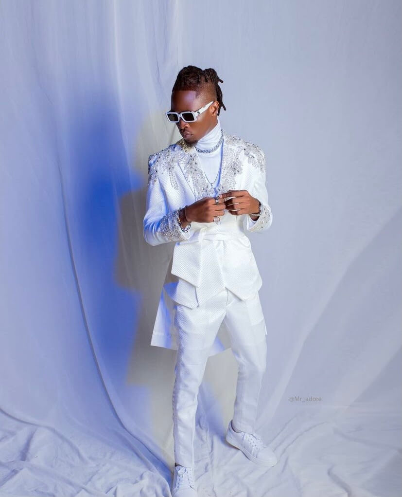 He accessorized with a pair of white sunglasses and a bold silver chain. He also had his dreads plaited in two all-back cornrows. Laycon finished this look with a pair of white sneakers, and we loved it!